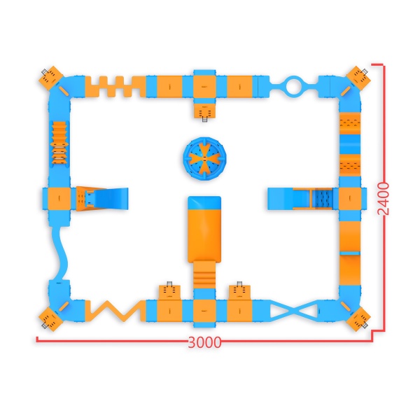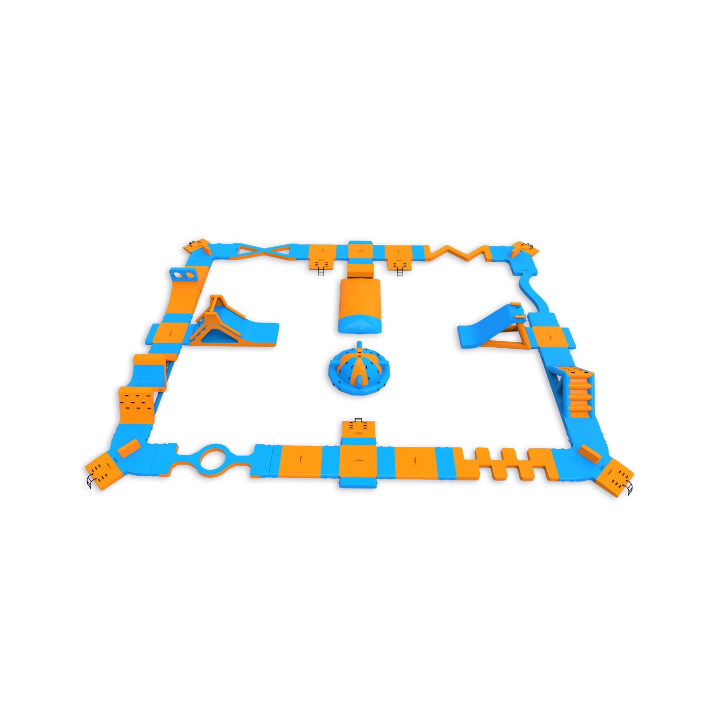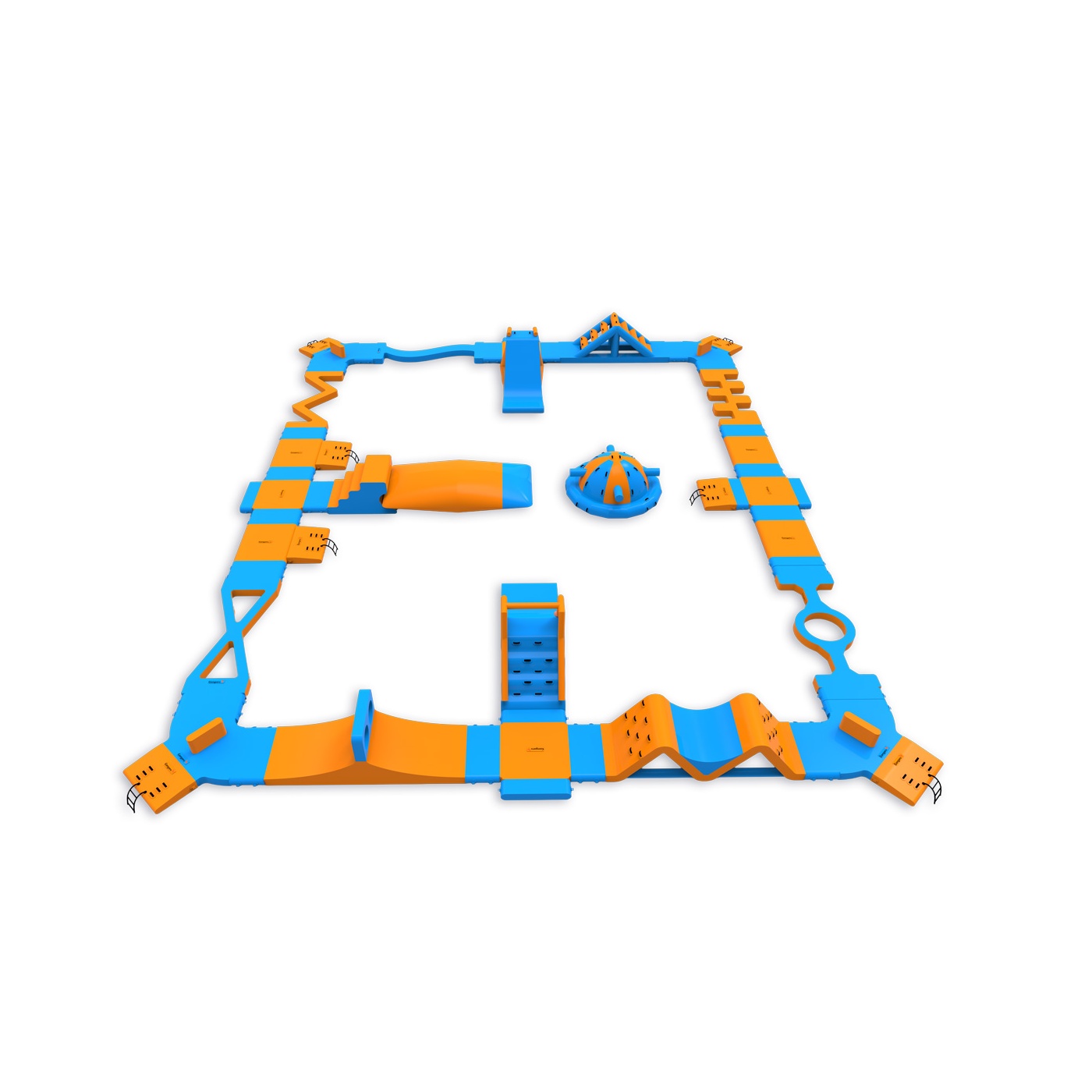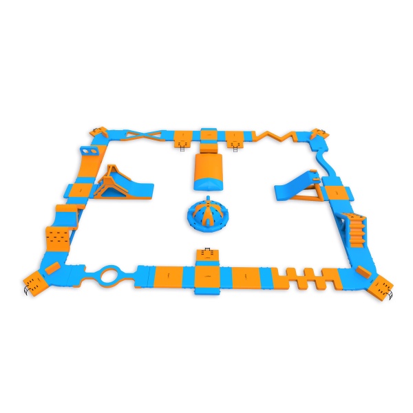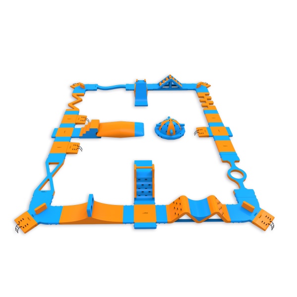 Skákací polštář uprostřed parku - prvek, který přitahuje účastníky a přirozeně prodlužuje jejich pobyt ve vodě. Okružní překážková dráha se dvěma skluzavkami, míčem a lezeckými prvky poskytuje aktivitu každému účastníkovi - ať už čeká na skok, nebo právě dokončil kolo. Je navržena pro 76 osob najednou a dobře funguje na středně velkých vodních plochách, kde je důležitá rozmanitost a vysoká fluktuace hostů.