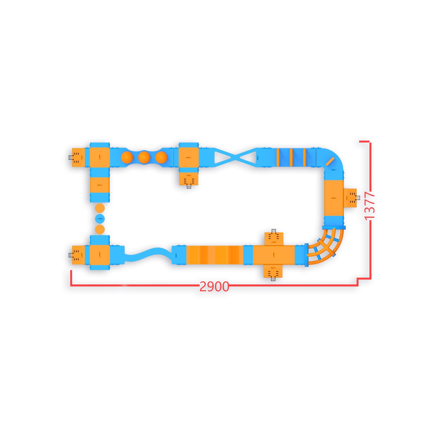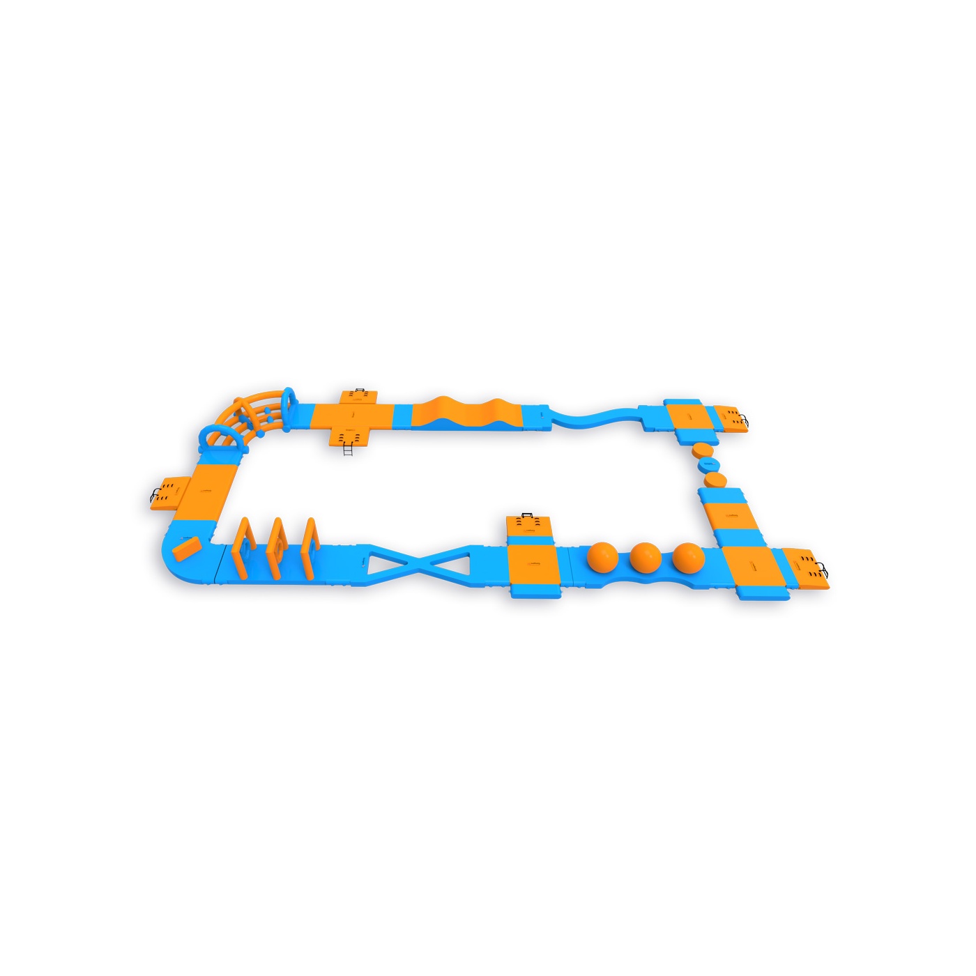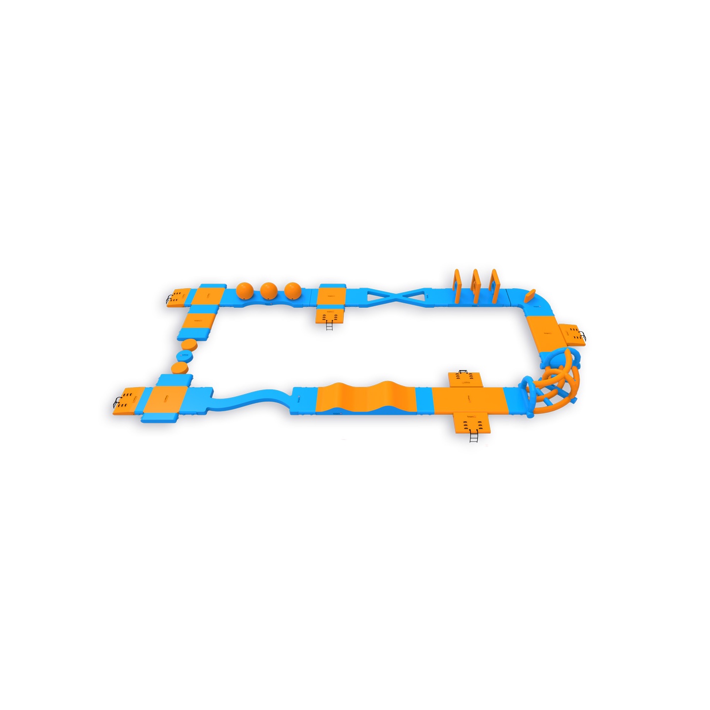 Stírací koule upoutají pozornost jako první - a účastníci se k nim rádi vrátí na další kolo. Okruh o rozloze 380 m² se zvlněnou cestou, kopci a přechody přes tyče poskytuje aktivitu pro širokou škálu účastníků - bez ohledu na věk nebo úroveň zdatnosti. Je navržen pro 40 osob najednou a dobře funguje na vodních plochách s omezenou šířkou, kde je důležitá dostupnost atrakce a vysoká fluktuace hostů.