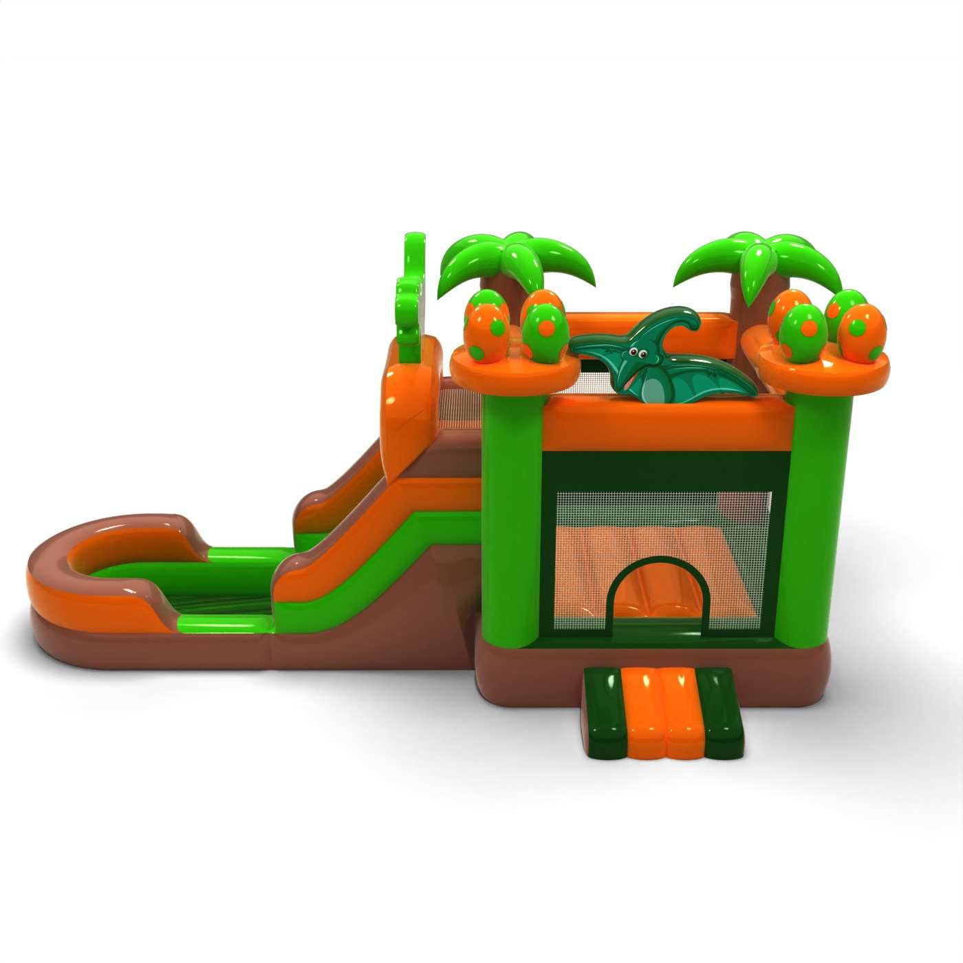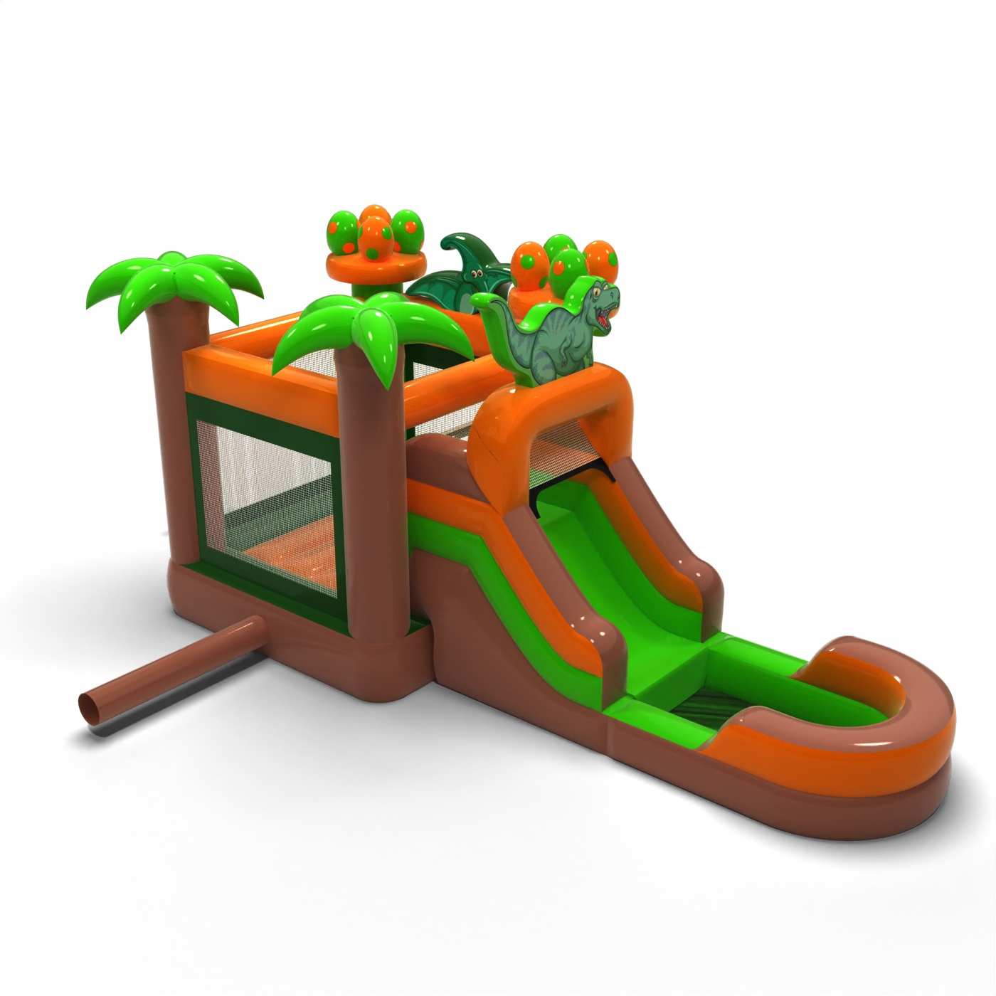 Propracovaná forma a jurská atmosféra vytvářejí ucelenou tematickou herní zónu inspirovanou světem dinosaurů. Kombinace skákání a klouzání umožňuje dětem aktivně prozkoumávat atrakci a udržuje je v pozornosti po delší dobu. Propracovaná vizuální stránka umocňuje atmosféru dobrodružství a dokonale podporuje tematické animace. Je určena pro pořadatele, kteří chtějí svou dětskou zónu ozvláštnit propracovanější atrakcí. Model je vhodný pro festivaly, dny města a větší rodinné akce.