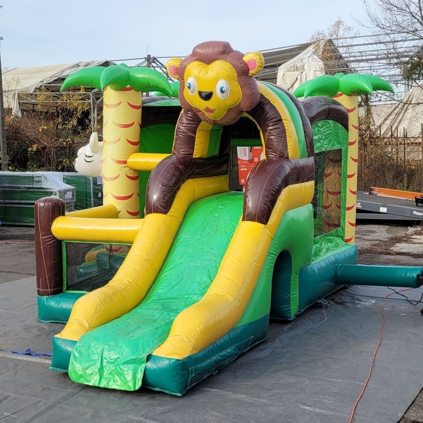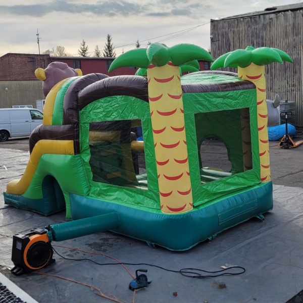 Použitý nafukovací bazén se skluzavkou - kombinace s motivem džungle je určena pro ty, kteří vědí, že dobrý byznys nemusí vždy znamenat nákup novinek přímo z výroby. Použité nafukovačky nabízejí možnost rychlého vstupu do oboru nebo dynamického rozšíření stávající nabídky – bez vysokých nákladů. Produkty v této kategorii jsou ověřené, poctivě popsané a připravené k okamžitému použití – získáš tak nejen výhodnou cenu, ale i jistotu a klid, že atrakce přinese výsledky. Pokud chceš investovat rozumně a jednat rychle – tady najdeš řešení, která dávají smysl.