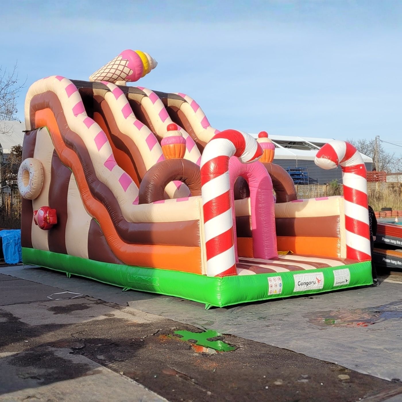 Použitá dvojitá otevřená skluzavka s motivem cukrovinek patří do kategorie použitých nafukovaček – tedy řešení, která spojují dobrou kvalitu s ještě lepší cenou. Ideální volba pro půjčovny, zábavní parky a eventové firmy, které chtějí rozšířit svou nabídku bez zbytečného vyčerpání rozpočtu. V nabídce najdeš nejen klasické hrady a překážkové dráhy, ale i méně tradiční atrakce, jako jsou sportovní sety, Bumper Balls nebo vodní skluzavky. Všechny produkty jsou technicky v pořádku, připravené k používání a mohou začít vydělávat hned po koupi.